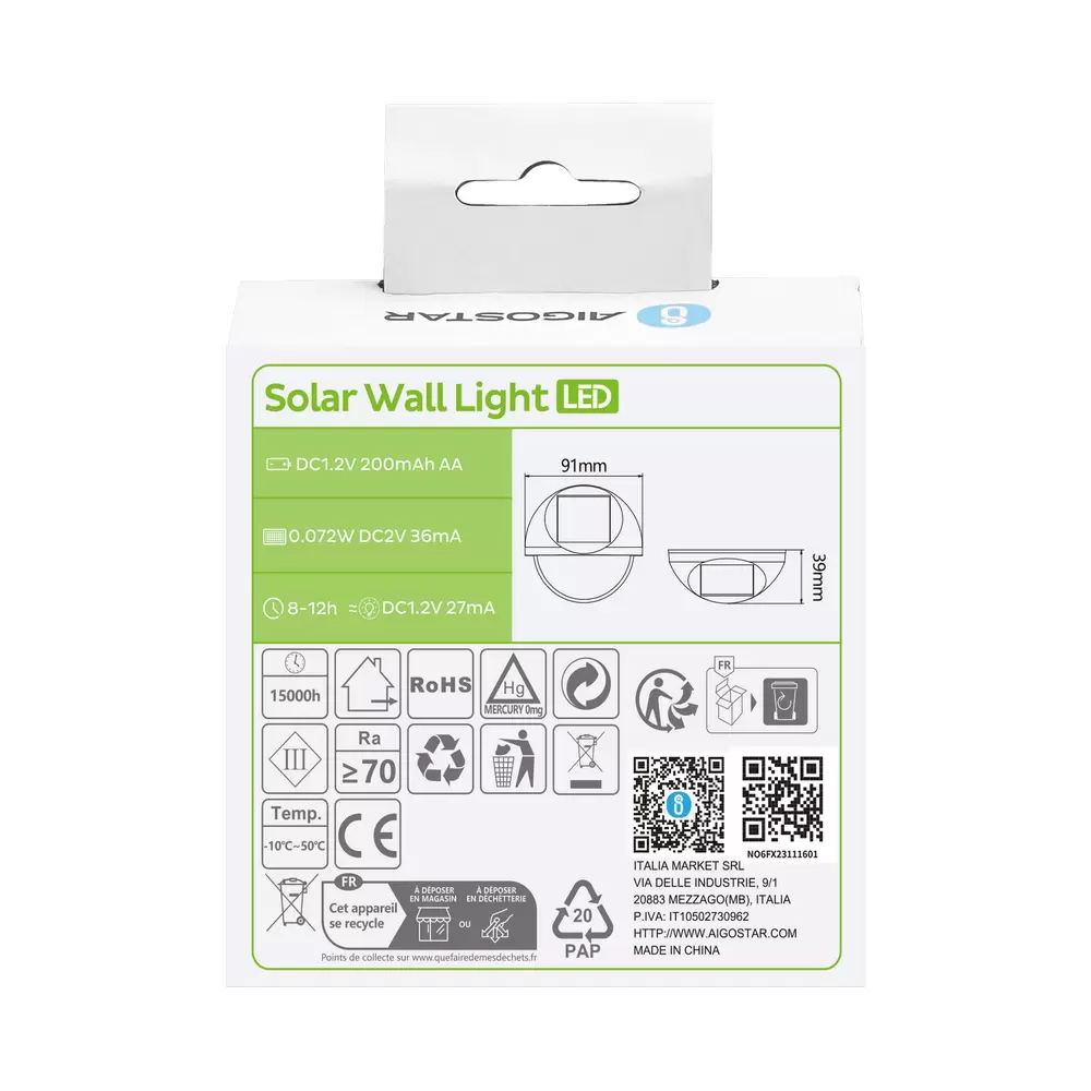 Realizzata con materiali resistenti e con grado di protezione IP44, è progettata per resistere agli agenti atmosferici e garantire prestazioni affidabili nel tempo. Ideale per chi desidera un’illuminazione efficace, elegante e sostenibile, senza complicazioni di installazione.
