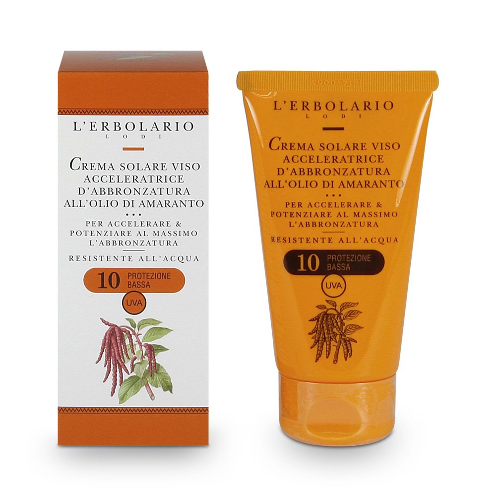 Solari Erbolario Crema Viso Accelleratrice Abbronzatura all’Olio di Amaranto SPF10, un effetto schermante d’eccezione, grazie alle proprietà dell’Olio estratto dai semi delle spighe dell’Amaranto, un olio vegetale vicinissimo alla composizione dei lipidi superficiali dell’epidermide.